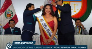 Leer Más »#NotaDePrensa DESIGNACIÓN DE MISS TURISMO 2025 SRTA. NICOLE ESTEFANY PRADO PIZARRO