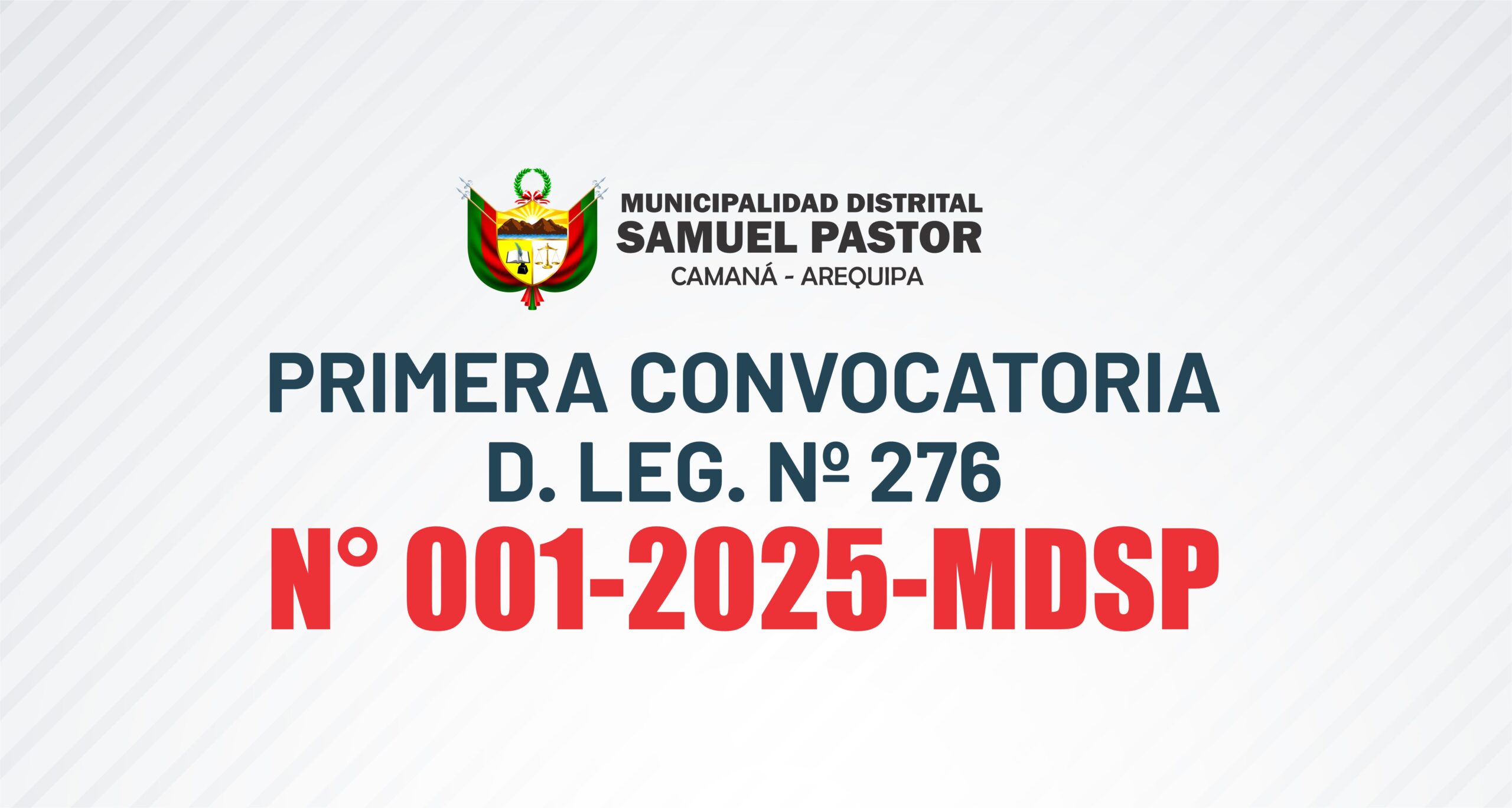 Leer Más »PRIMERA CONVOCATORIA D. Leg. Nº 276 N° 001-2025 MUNICIPALIDAD DISTRITAL DE SAMUEL PASTOR