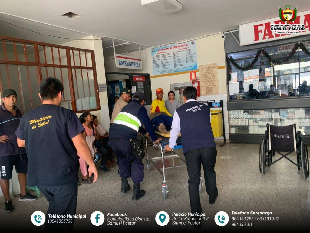 Posteriormente, y como parte del protocolo de atención, el personal de Seguridad Ciudadana trasladó a ambas personas al Hospital de Camaná, donde fueron recibidas y atendidas por los médicos de turno para una evaluación y atención especializada.
