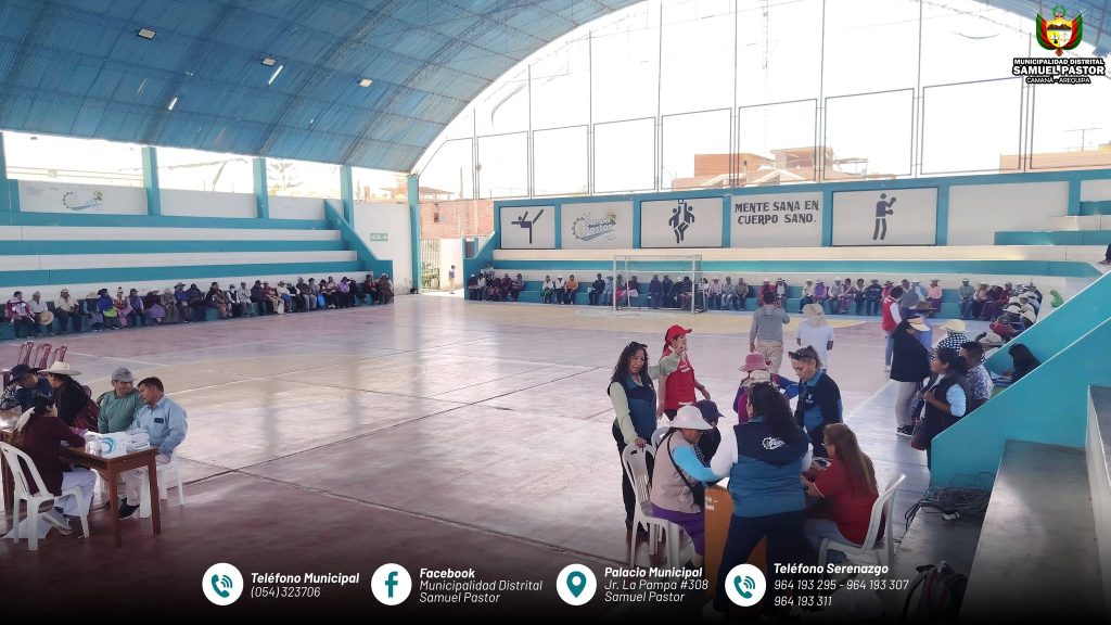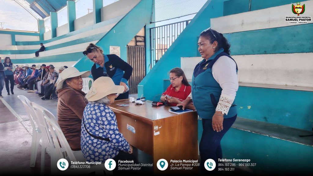 La Municipalidad Distrital de Samuel Pastor, a través de la Gerencia de Desarrollo Social y en coordinación con funcionarios del Banco de la Nación, brindó apoyó a los usuarios del programa Social Pensión 65, para que estos realicen el cobro correspondiente a los meses de noviembre y diciembre de manera descentralizada en el Coliseo de La Pampa.