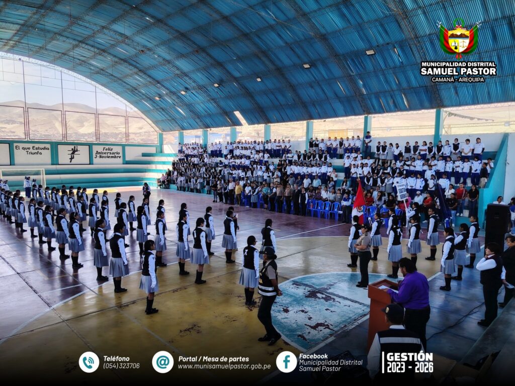 En una jornada marcada por el civismo y la participación estudiantil, la Municipalidad Distrital de Samuel Pastor se hizo presente en la ceremonia de juramentación de la Institución Educativa “Sebastián Barranca” (turno tarde), realizada en el coliseo cerrado de La Pampa. La actividad reunió a autoridades, comunidad educativa y alumnos, quienes protagonizaron un acto que refuerza la identidad y responsabilidad dentro del entorno escolar.