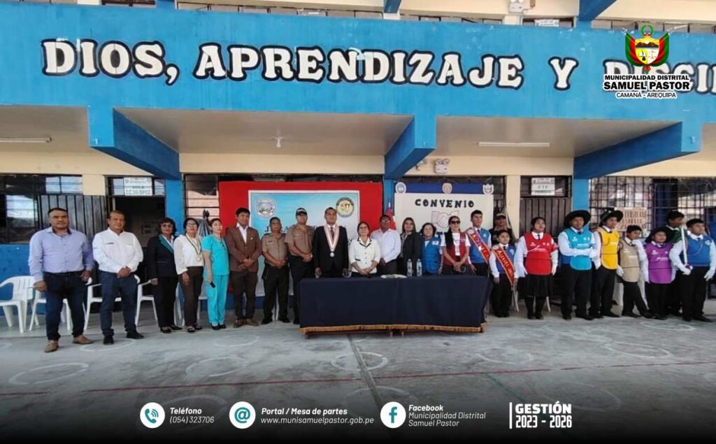 La Municipalidad Distrital de Samuel Pastor participó activamente en la ceremonia de juramentación de la Policía Escolar y la Brigada de Seguridad y Protección de la Institución Educativa CPED Alto Huranagal, reafirmando su compromiso con la formación de estudiantes responsables y conscientes de la importancia de la seguridad en su entorno.